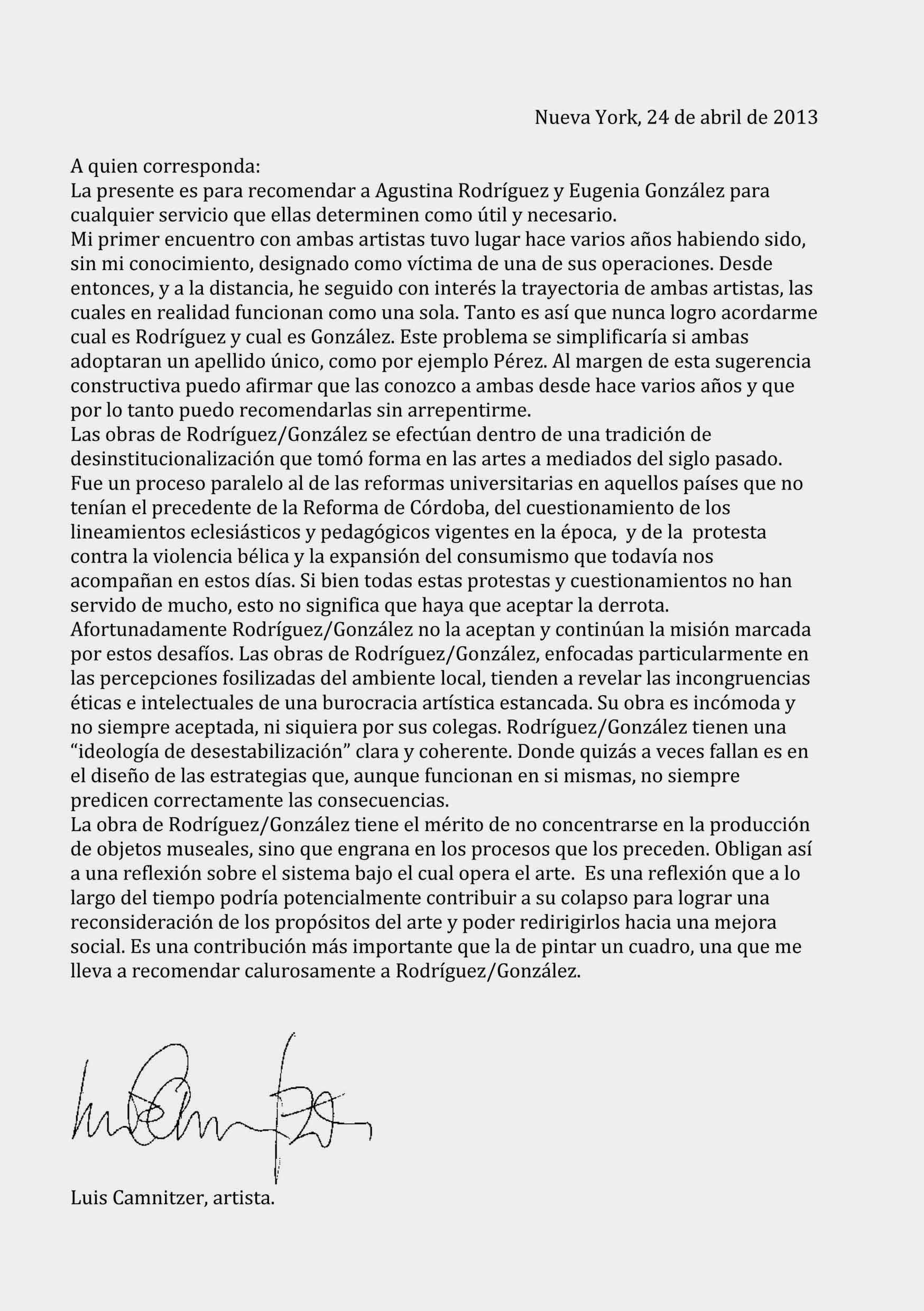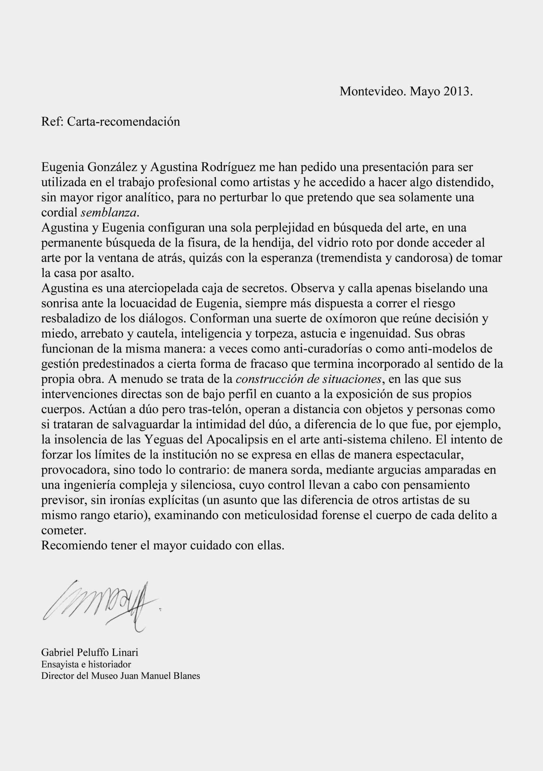Se solicitan cartas de recomendación a personas de interés.