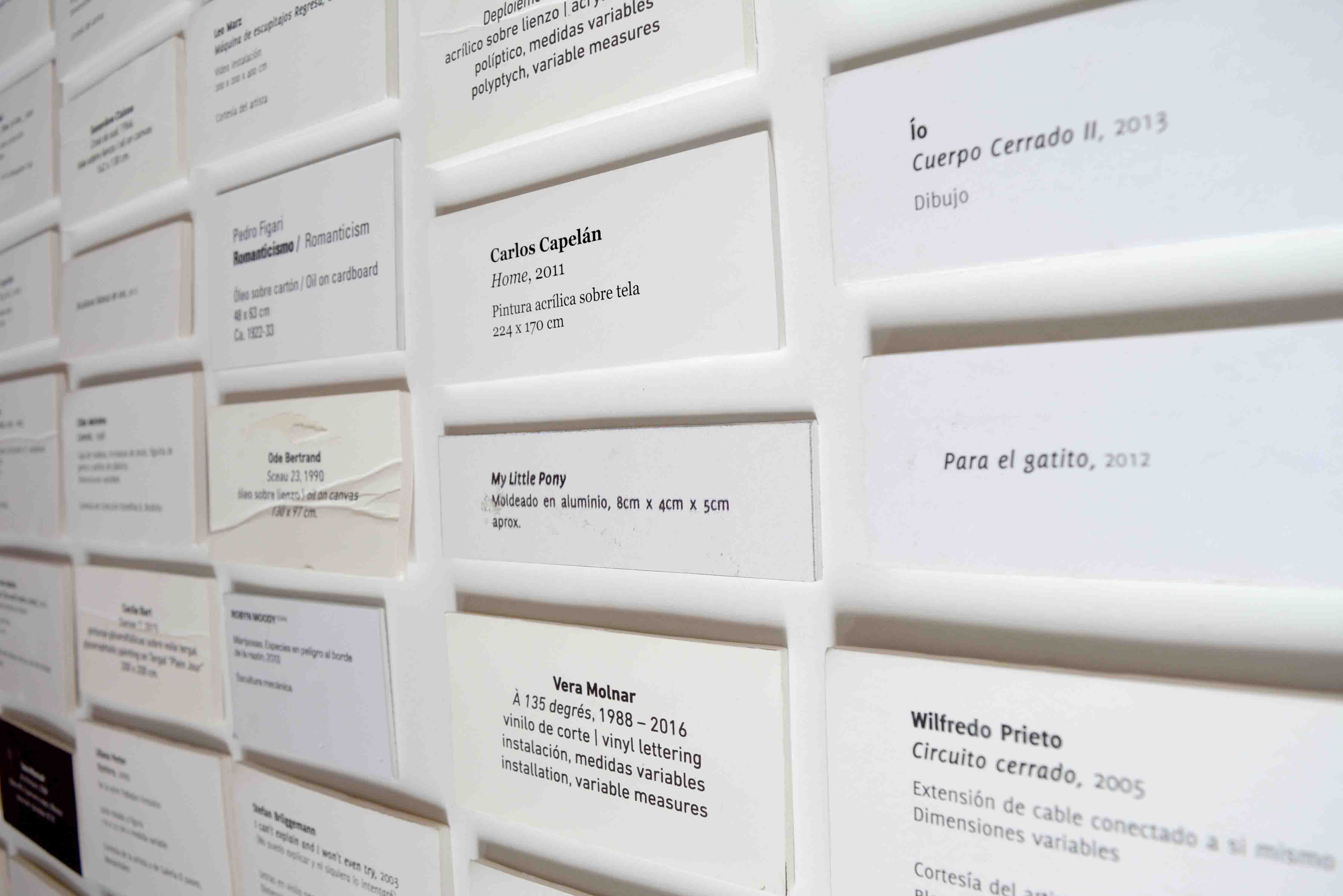 Colección de fichas técnicas y epígrafes de obras con las que me crucé mientras trabajaba en distintos museos e instituciones. En su conjunto, esta recopilación funciona como una suerte de archivo personal e institucional a la vez: un inventario de artistas, títulos, medidas, técnicas, fechas y descripciones que condensan no solo obras, sino también modos de narrarlas y legitimarlas. Al reunirlos fuera de su contexto original, estos paratextos adquieren una nueva autonomía y revelan su carácter performativo, burocrático o incluso poético.