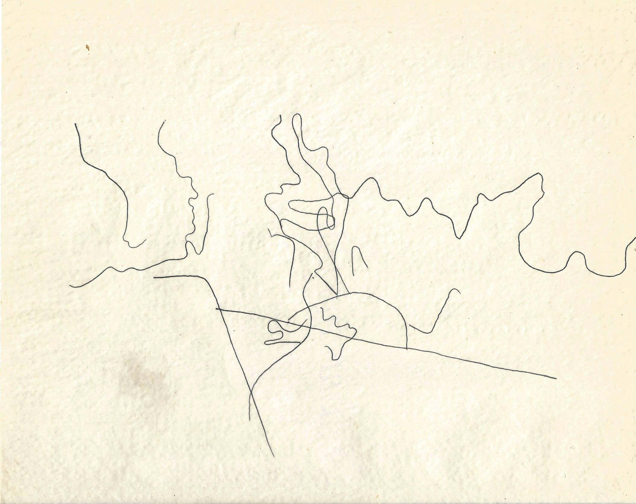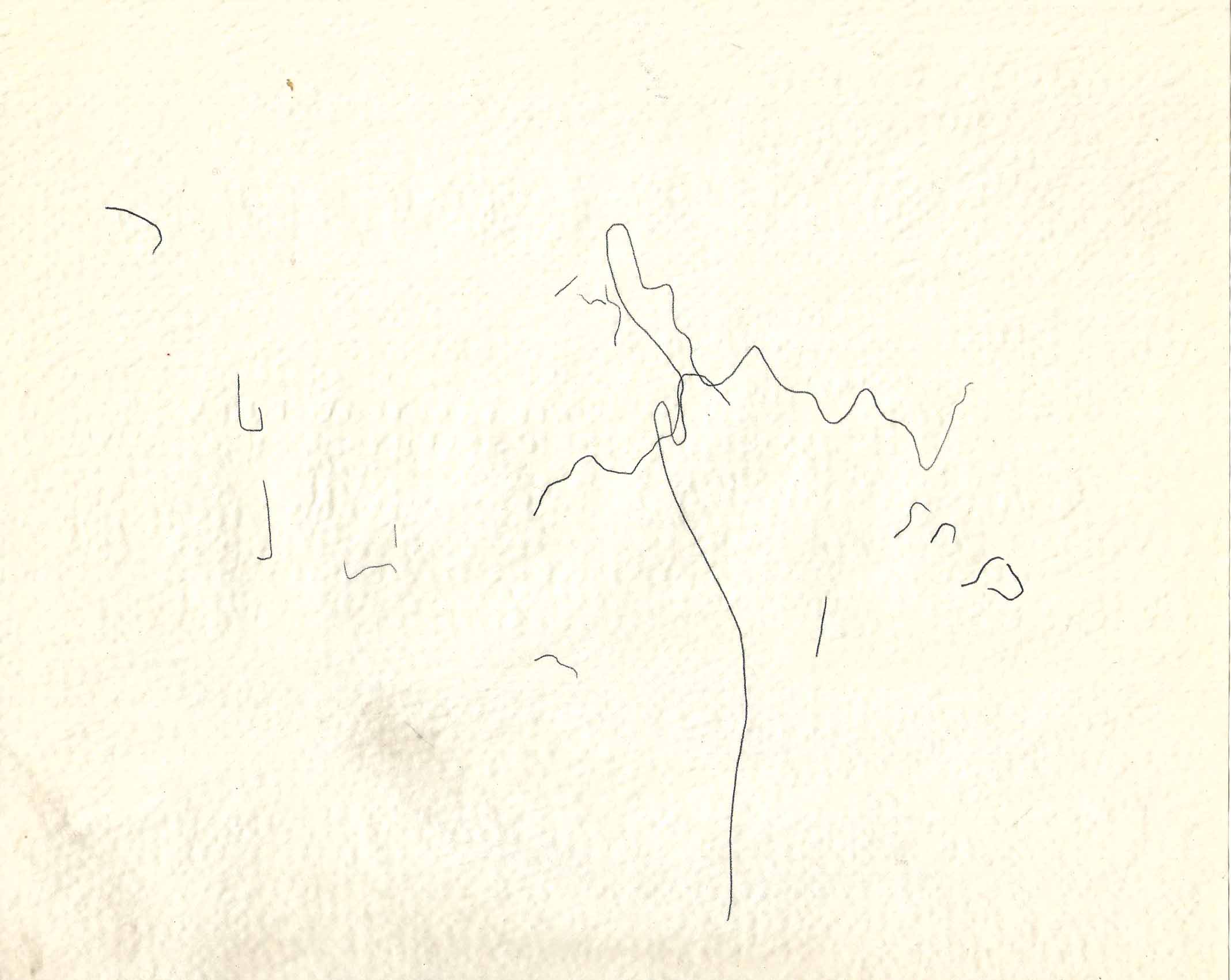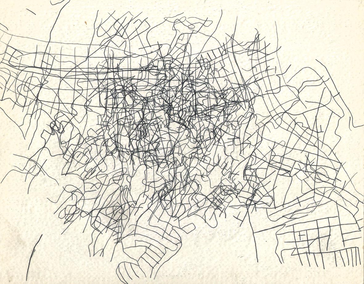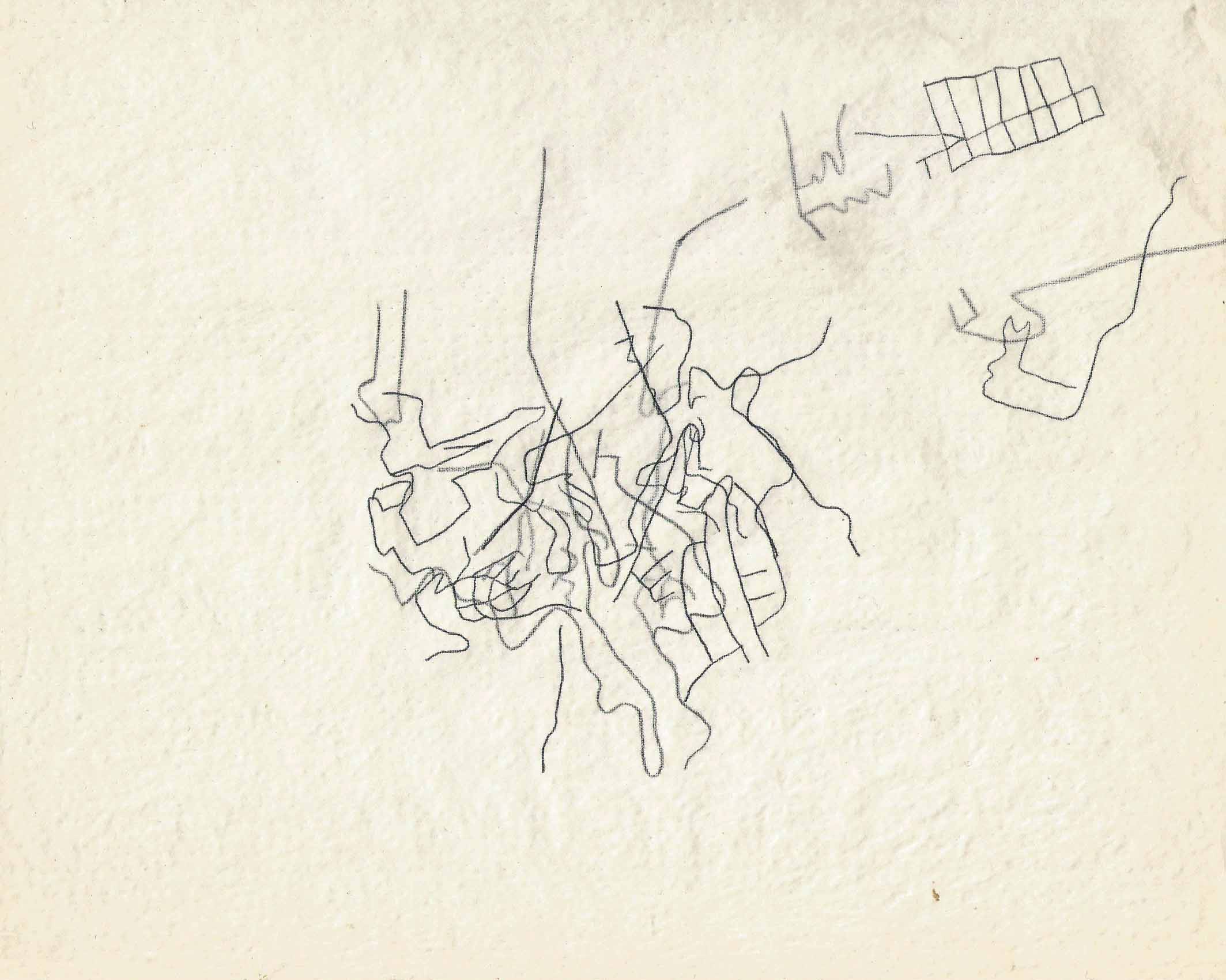 Dibujo realizado con papel carbonilla sobre el mapa de Valparaíso, exhibido en WORM durante la residencia en el Festival Tsonami.
